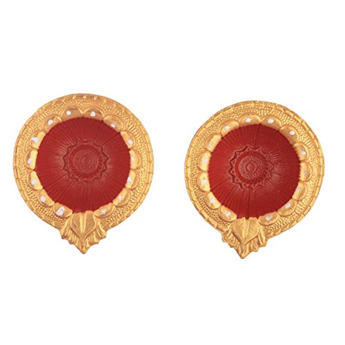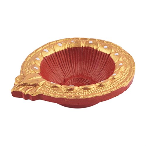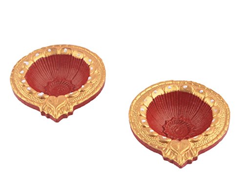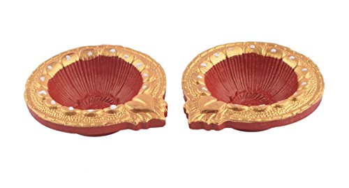 Set of 2 Handmade Decorative Diwali Clay Festive Décor DIyas Red & Gold Terracotta Clay Diwali Diya Oil mps