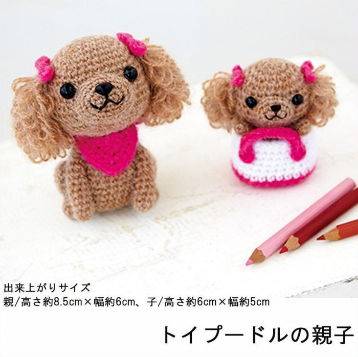 | トイプードルの親子のかわいいあみぐるみです♪バッグは取り外しできます。中詰め用の手芸わたは入っていませんので別途ご用意ください。 |