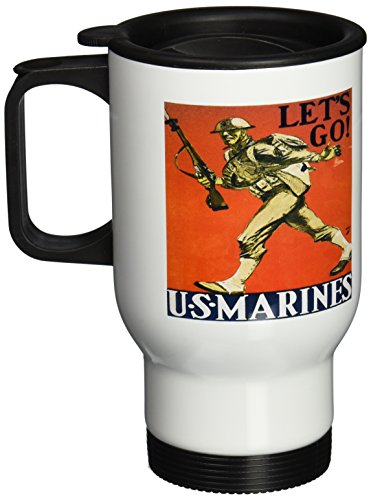 3dRose Vintage Lets Go US Marines Recruiting Poster Travel Mug, 14-Ounce, Stainless Steel