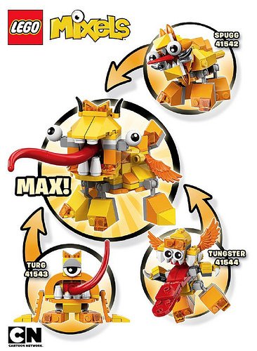 The Lixers is a long-tongued Mixel tribe with a taste for all things fun, wacky, and mixelicoius. Combine: Spugg 41542 Turg 41543 Tungster 41544 to make: LIXERS MAX!