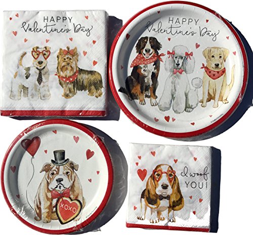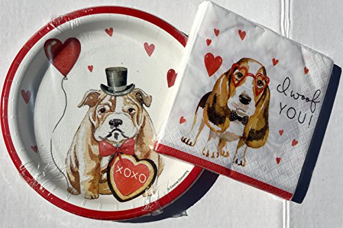 Creative Converting Valentine’s Day Party Tableware Bundle Set, Heart Dogs