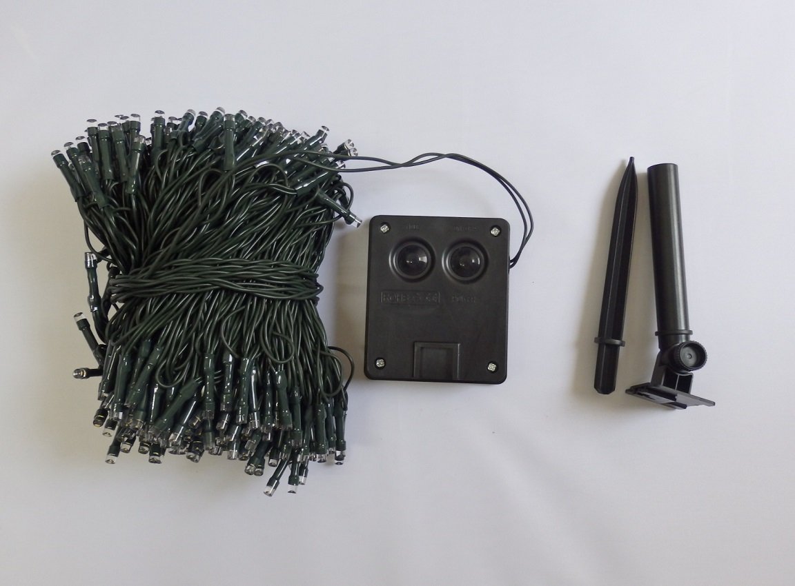 色:ブルー LED数:300球 LED間隔:約10cm 連結不可 ソーラー充電式 全長:約28m ソーラーパネルからLED間:約2m コードの色:ダークグリーン ソーラーパネルの大きさ:8.5×7.3×2.4(cm) 支柱:22cm フル点灯時間:約6時間 フル充電時間:約6時間 点灯パターン:8パターン 電池:ニッケル水素電池 バッテリー:1.2V/1200mA