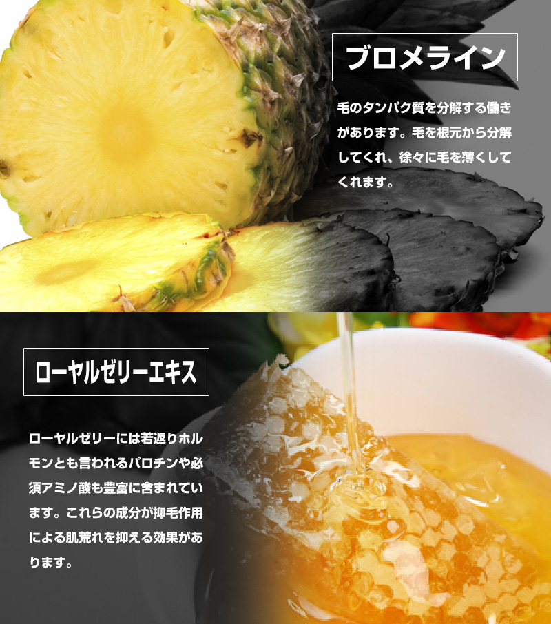 | 原材料 | カリ含有石ケン素地、水、ハチミツ、ローヤルゼリーエキス、ラレアディバリカタエキス、パイナップル果実エキス、パパイア果実エキス、ローズマリー葉エキス、塩化Na、トレハロース、没食子酸エピガロカテキン、オウゴンエキス、ヒマワリ種子油、パパイン、ブロメライン、香料、BG、グリセリン、レシチン、炭、イランイラン花油、ダイズ種子エキス、豆乳発酵液、モロッコ溶岩クレイ、カキタンニン、ヒアルロン酸Na、炭酸水素Na、炭酸Na |