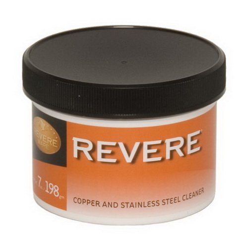 -. Feature : 7oz / 198gm Container / Restores Luster to non-lacquered: Copper and Stainless Steel, Solid Brass, Chrome, Glass and Ceramics / Sponge Applicator Enclosed / Do Not use on silver, aluminum, brushed stainless steel or painted surfaces / Revere Copper and Stainless Steel Cleaner