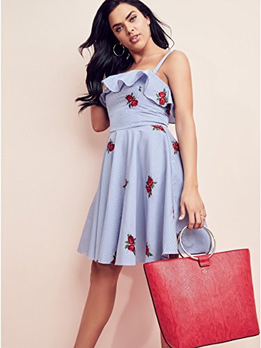 A bright red faux-snakeskin design with dual O-ring top handles make this trendy satchel perfect for pumping up your everyday style. Features removable shoulder strap and an exterior zipper pocket. Interior zipper pocket and multifunctional slip pockets. Top zipper closure.