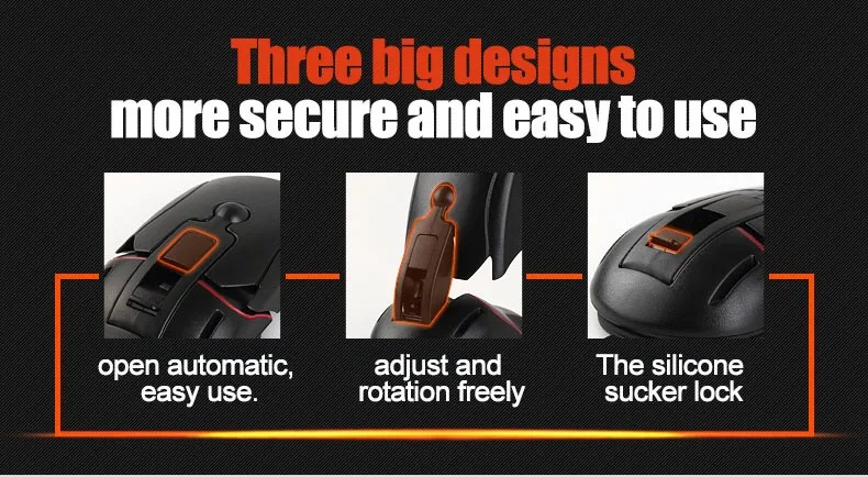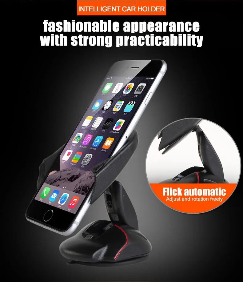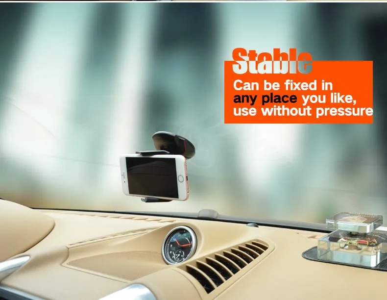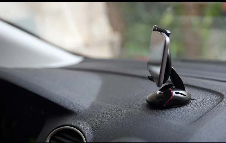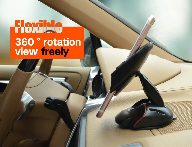 Rotating design flexiblely to free adjust theangle,provide a good view when you drive on road,will not blockyour sight. Firmly silicone sucker base with lock catch to preventdevices falling.Strong stick suction cup,can be adhere to cardashboard and windshield.Also a great stand on desk holder forwatch TV at home ect.