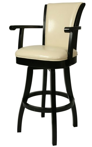 -. Binding : Misc. -. Brand : Impacterra -. Feature : Padded seat, sturdy legs and foot rest / Feher Black Finish upholstered in Black Leather / The seat frame is made of wood / Seat height of the barstool is 30 Inch / Dimensions of barstool (L x W x H): 23.62 Inch by 44.49 Inch by 22 Inch -. Label : Impacterra -. Manufacturer : Impacterra -. Model : GL-217-30-FB-865-PARENT -. PackageQuantity : 1 -. ProductGroup : Furniture -. ProductTypeName : HOME_FURNITURE_AND_DECOR -. Publisher : Impacterra -. Studio : Impacterra -. Title : Pastel Furniture GL-217-30-FB-865 Glenwood Swivel Barstool with Arms, 30-Inch, Feher Black and Black Leather