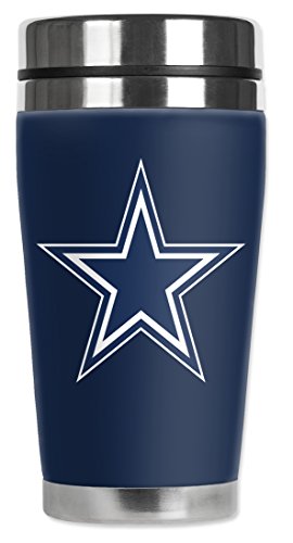 -. Binding : Kitchen -. Brand : Mugzie -. Color : Silver -. Feature : Officially Licensed NFL Travel Mug featuring Cowboys team logo / 16 Oz Stainless Steel Travel Mug covered with water-proof, neoprene wetsuit material / Hand-sewn fabric cover is made from 1/4 inch closed-cell neoprene that is covered with soft, water-proof polyester fabric / Stain-resistant cover is printed in hi-resolution and has full-wrap coverage. Spill resistant lid and a non-skid bottom / Cushioned cover affords a secure grip and eliminates condensation and sweating. Fits in most car cup holders and the counter-weighted bottom provides stability. Bottom diameter is 2 3/4 Inch -. Label : Mugzie -. Manufacturer : Mugzie -. Model : AAA-Cowboys-ZIE -. MPN : AAA-Cowboys-ZIE -. PackageQuantity : 1 -. PartNumber : AAA-Cowboys-ZIE -. ProductGroup : Kitchen -. ProductTypeName : KITCHEN -. Publisher : Mugzie -. ReleaseDate : 2015-10-31 -. Size : 16 oz -. Studio : Mugzie -. Title : Mugzie Dallas Cowboys Travel Mug with Insulated Wetsuit Cover, 16 oz, Silver