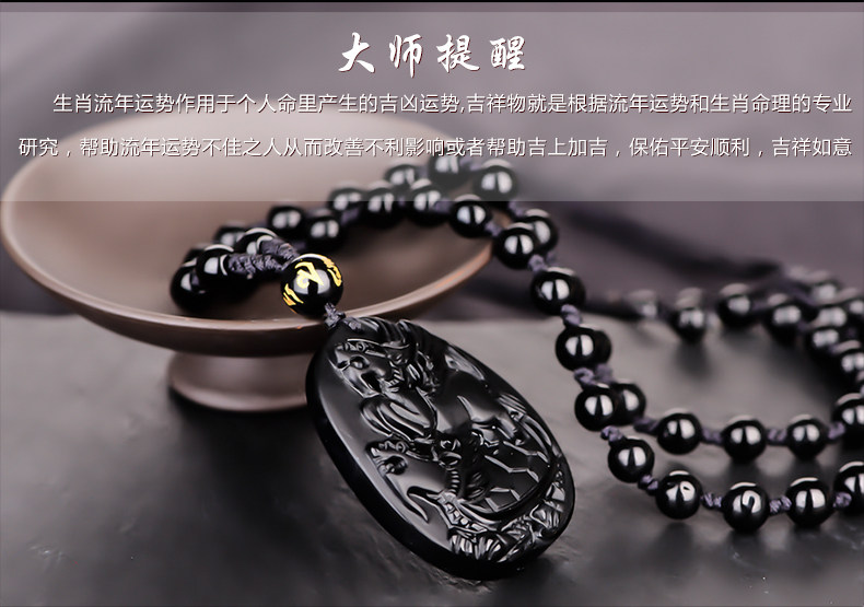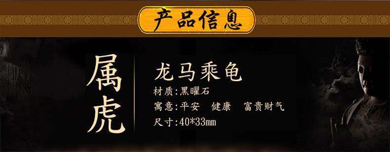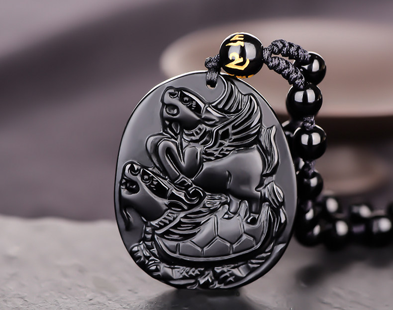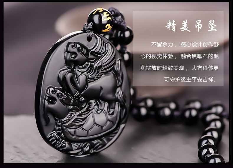 开光黑曜石龙马乘龟吊坠开运吉祥物男女生肖虎挂坠护佛