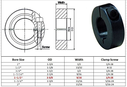 1-1/2" Bore Single Split Shaft Collar Black Oxide Set Screw Style (4 PCS)