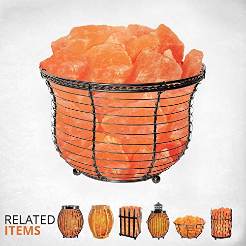 Product Details: • Salt Material: 100% Himalayan Pink Salt Crystal • Basket Lamp: The Tall Round Style basket lamp is made from Original Material. • Bulb: 25-Watt bulb • Power cord: 6ft Power card with Dimmable Rotary Switch. • Reliable & Easy to Use Dimmable Lighting: Adjust the simple rotary knob on electronic dimmer to get the desired intensity of Glow. • Dimensions: The dimensions are 8 x 8 and the height is 7.2 inches - the Tall Basket shape gives for the lamp a unique and elegant look. • Due to the natural variation in Himalayan Crystal salt, weight, size, color and shape may vary What is in the Box: • 1 X 25-Watt Light Bulb • 1 X Himalayan Salt Basket Lamp with Dimmable Switch. • Himalayan Pink salt crystalsFeature