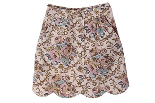 -. Feature : 【美脚に見せる台形シルエット。】台形シルエットとスカラップで下半身をスッキリ見せてくれるゴブラン調ミニスカート♪ゴブラン織り 風の花柄がアンティーク感があり存在感抜群。ヴィンテージ風の特徴的な花 柄と秋らしいシックな色合いでこれからの季節にピッタリのスカートです。台形シルエットのコンパクトなデザインですが、後ろ部分はウエストゴムになっており履きやすいデザインに。 / 【クラシカルな雰囲気に♪】綿100%で軽い(軽量)履き心地のボトムスは、裏地付き で透け感なく安心して着用できます。台形スカートは足さばきも良く、歩きやすい&動きやすい のでデイリー使いにも、オシャレしたい特別な日の装いにもオススメ。可愛いフラワー柄ですが、フロントのくすんだゴールド ボタン(金)で大人っぽく履きこなすことができます。美脚効果も◎ / 【ミニ丈で女性らしく◎】Lサイズの大きいサイズもご用意し、様々な着こなし に対応してくれるスカラップスカート。フロントはフラットなデザインなのでハイウエストで履いてウエストインしてもバッチリ おしゃれ にコーデできます。ミニ丈で女性らしい装いができ、デートや女子会にも おすすめ。秋はタイツやソックス、レギンスを合わせ れば、ますますコーデが楽しくなります♪