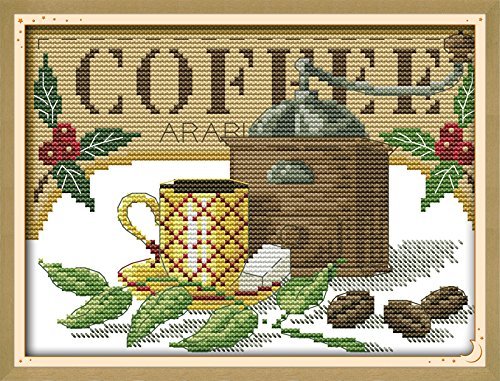Counted Cross Stitch Kits Coffee Artistic Conception 14 Count 10" x 7" DIY Needle Work for Home Decor