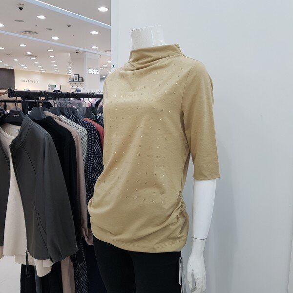 심플한 디자인에 텐셀과 폴리 스판이 혼방된 부드러운 터치감과 신축성 좋은 소재로 착용감이 좋은 저지 티셔츠 입니다. 루즈한 반넥으로 목을 살짝 감싸주어 간절기에 입기 좋은 스타일 입니다. 앞쪽엔 핫픽스가 들어가 화사하면서도 고급스럽게 연출하기 좋습니다.