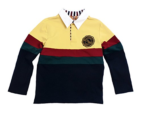 -. Title : 上品子供服 英国小紳士 貴族紋章刺繍入りきちんと感ある長袖ポロシャツ (JPBt)イエロー/ネイビー 130-170cm