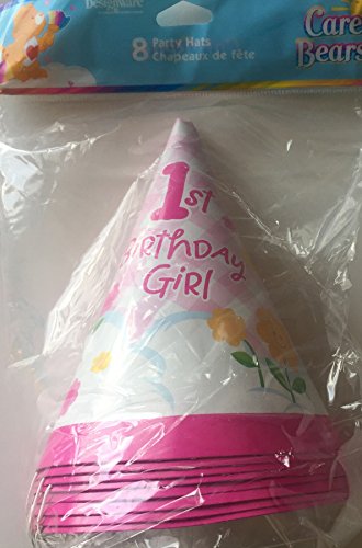 (Party Express)/Stationery Party Supplies/Party Supplies/DIRECT FROM USA/Care Bears Girl 1st Birthday Pink Party Cone Hats - 8 Count