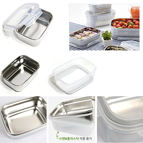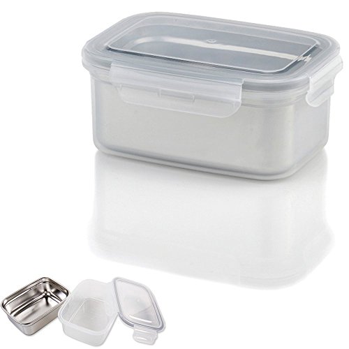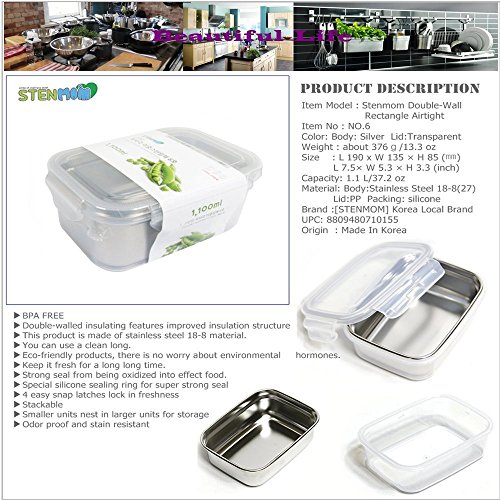 STENMOM Food Storage Containers Box Stainless Steel Rectangle Airtight Double-Wall Structure 1.1L/37oz Fresh Keeper Stackable BPA Free
