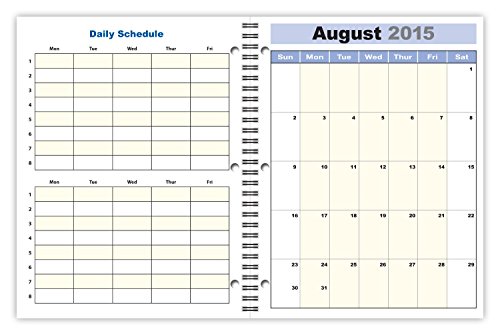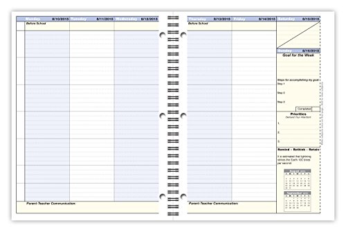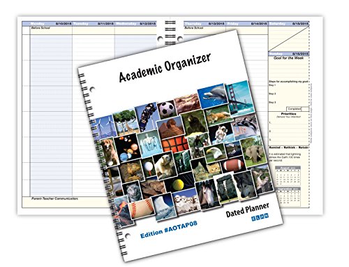 -. Feature : 8 1/2" x 11" Dated Academic Organizer with a weekly view / Weekly format: Days of the week across the top, dated August-June with room for seven subjects down the side / Monthly calendars (August-June) for long-term planning, daily schedule (2) at beginning of book for quick reference / P.R.Iorities list, before school block, parent-teacher communication, interesting and thought provoking trivia on every planner week / Extra-heavy (3 mil) laminated cover, wire-o bound with wrap design, locks covers on with 3-hole drill for insertion into 3-ring binders