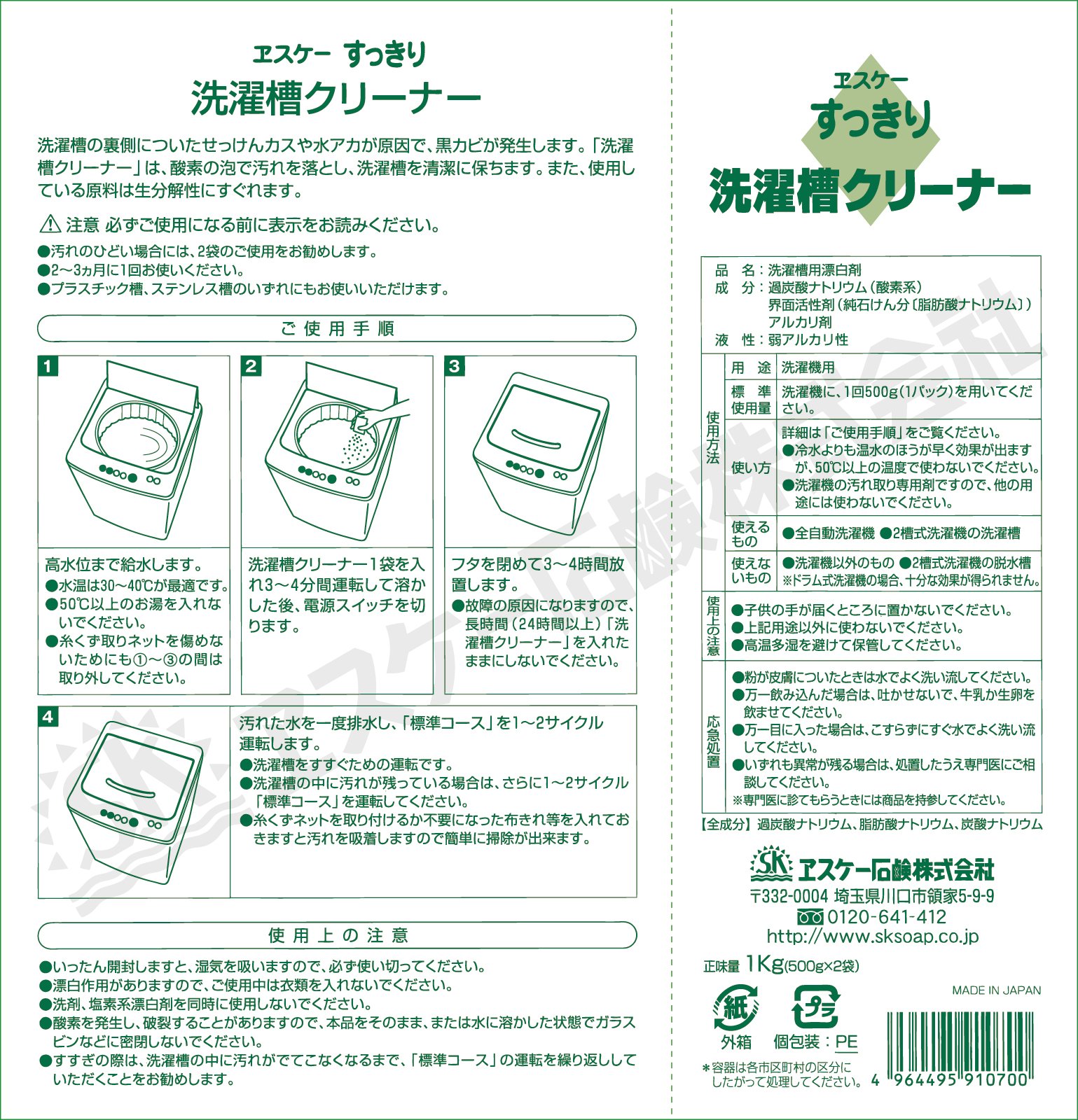 Clean washing tank cleaner 500g × 2 bags input