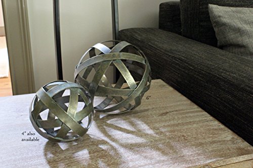 Trendy and fun metal decorative spheres come in two sizes. The 4 inch and 6 inch diameter balls look great together or separately. Display on a coffee table, on a cool tray or on a bookshelf for an eye catching and unique accent!Feature