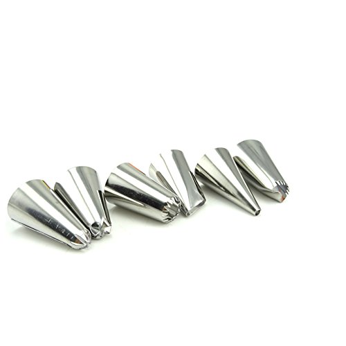 Set includes 6 tips, 1 pastry bag and 1 coupling,with which you can create all types of patterns on cake.