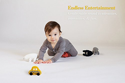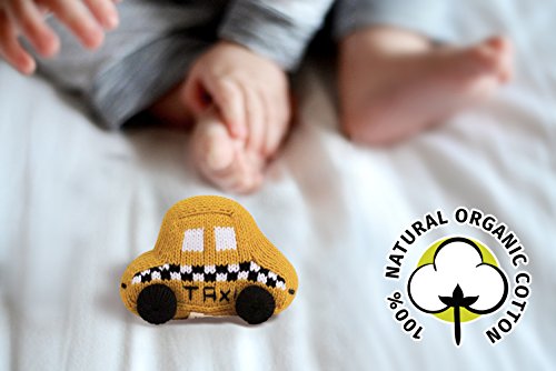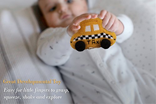 This baby rattle is one of Estella's most popular first baby toys. Inspired by the vintage New York Taxi, these baby rattles have the distinct bold yellow hue and contrasting black details of the iconic New York cab. With this sharp contrast and an attention grabbing rattle sound, babies are infatuated with this soft toy. This one of a kind infant toy has been featured in Harpers Bazaar, Timeout NY, Fox News and has been a big hit at countless baby showers. Most importantly, it has been loved by many babies. The taxi rattle is part of Estella's collection of exclusive baby rattles that cater to various interests, others include: a purse rattle for the budding fashionista, a baseball rattle for the next major league phenom, a transit Metro Card rattle for the little commuter, a milk and cookie rattle, a school bus, a racing car, a beach ball, and more. Hand-made with soft Peruvian cotton by local artisans for New York based children's boutique designer Estella, these rattles are unique baby gifts and are the life of any baby shower.Feature