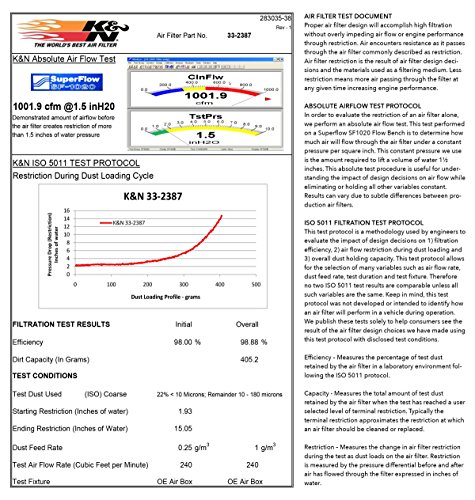 -. Binding : Automotive -. Brand : K&N -. Department : unisex-adult -. EAN : 0024844194725 -. Feature : Designed to boost horsepower and rate of acceleration / Can be cleaned and used again / High air flow with exceptional filtration / Lasts up to 50,000 miles before cleaning is required depending on driving conditions / Works with original equipment manufacturer vehicle electronics -. IsAutographed : 0 -. IsMemorabilia : 0 -. Label : K&N -. Manufacturer : K&N -. ManufacturerPartsWarrantyDescription : Parts -. Model : 33-2387 -. MPN : 33-2387 -. NumberOfItems : 1 -. PackageQuantity : 1 -. PartNumber : 33-2387 -. ProductGroup : Automotive Parts and Accessories -. ProductTypeName : SYSTEM_POWER_DEVICE -. Publisher : K&N -. ReleaseDate : 2007-09-21 -. SKU : reikos_0019438425_tab01_3051 -. Studio : K&N -. Title : K&N 33-2387 High Performance Replacement Air Filter -. UPC : 024844194725 -. Warranty : Million Mile Limited Warranty