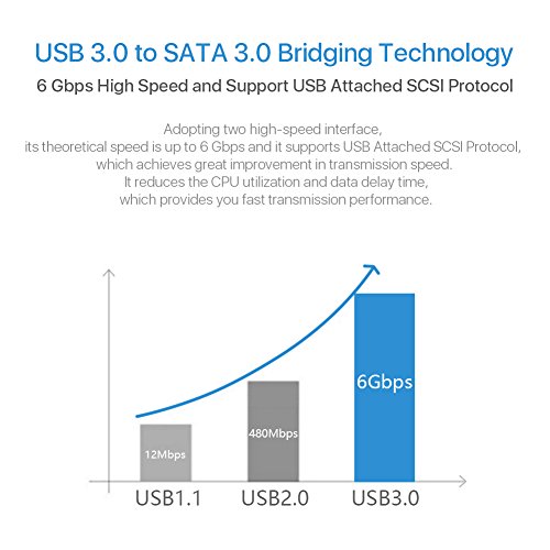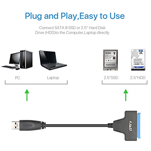 Studio : JD Tech Publisher : JD Tech Binding : Electronics Product Description Why Choose JD Tech? 1. The JD Tech means high-quality products for reasonable prices. Our cases are stylishly designed and produced with care to ensure an exact fit for the daily functionality of your device. 2. We boast excellent customer service with a high satisfaction rating, with our team of representatives ready to assist you Monday to Friday, from 9:30AM to 5:30PM Pacific Time. 3. We pack and ship your orders directly from our US-based warehouse within 24 business hours, and tracking information will be provided to you as soon as it's available. Description JD USB 3.0 to SATA III 2.5" Hard Drive Adapter, Supports UASP SATA I II III for 2.5 inch HDD and SSD Specification [Super Fast] SuperSpeed Data: Supports super-fast USB 3.0 data transfer rates to ensure data transfers in the minimum time possible. (Actual transmission rate depends on the capability of the connected HDD/SSD, up to 3Gbps.) Also backwards-compatible with the slower USB 2.0. [Easy Companion] Plug and Play: Straightforward interface turns bare hard drives and SSDs into readable USB devices. [Compatibility] Compatible with the slower USB 2.0 and SATA I II III 2.5" hard disk and all 2.5-inch SATA HDD, SSD, BLU-RAY DVD, CD-ROM, DVD-ROM, CD-RW, DVD-RW and DVD RW combo devices. [OS Compatibility] Supports Windows XP/Vista/7/8/10 and Mac OS.