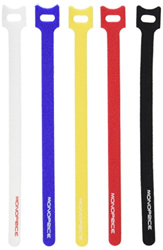 Monoprice 106488 9-Inch Hook and Loop Fastening Cable Ties, 5 Colors