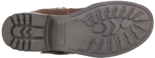 Amazon.com Put a little motorcycle chic in your boot weather look with the Aleshia from MIA. The soft leather upper has a road-tested look thanks to the distressed toe and heel while a quintet of buckles adds texture and edgy attitude. The lug sole gives you grip and street-smart appeal in this bold look. 0