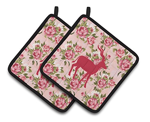 Caroline's Treasures Deer Shabby Chic Pink Roses Pair of Pot Holders BB1121-RS-PK-PTHD, 7.5HX7.5W, Multicolor