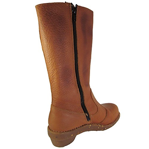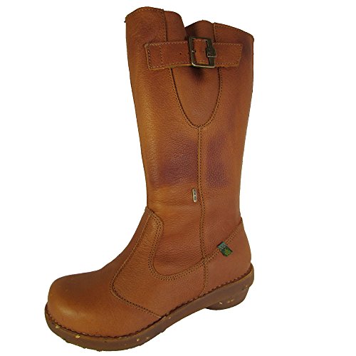 Amazon.com This boot from El Naturalista easily goes anywhere--and with anything--thanks to its Gore-tex infused vegetable tanned leather upper. The seamed leather shaft makes for a shapely fit, and a charming cork-like rubber outsole offers excellent footing under variable conditions. A rounded heel adds visual zip, and a full side zipper translates to dressing ease. 0