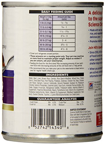 Hill's Science Diet Mature Adult Savory Stew Beef and Vegetables Dog Food Can, 12.8-Ounce, 12-pack