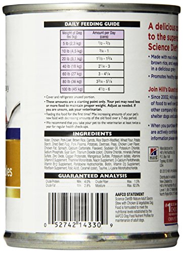 Hill's Science Diet Mature Adult Savory Stew Chicken and Vegetables Dog Food Can, 12.8-Ounce, 12-pack