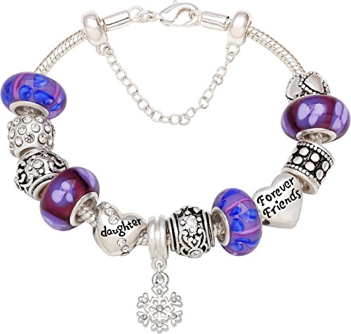 "Always My Daughter Forever My Friend" Love Heart Bead Charm Bracelet For Christmas Birthday Mother's Day Gift