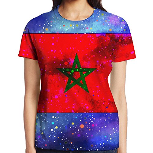 (AAAPlus)/Accessories/Hats/DIRECT FROM USA/AAAPlus Morocco Flag Women's T-Shirt Round Neck Colorful 3D Printed Funny Fashion T Shirt Tee Shirt