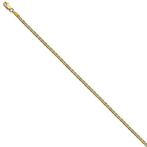 A nautical style design crafted to resemble the cable used to anchor ships, also known as the mariner chain, creates a simple innovative styled anklet. This 2.4mm width, 10-inch long 10k yellow gold chain features a solid link construction, a polished finish and a lobster-claw clasp that provides a secure, worry-free fit.Feature