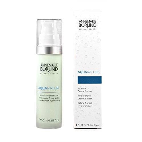 Annemarie Borlind Aquanature Hyaluronate Creme Sorbet has been specifically formulated for demanding, dehydrated skin.The intensive moisturising complex, consisting of aloe vera and an innovative botanical hyaluronic acid combined with phyto cells from papyrus and marine plant extracts, hydrates the skin, protects it against environmental influences, and improves its powers of regeneration. Lines caused by dryness are reduced.