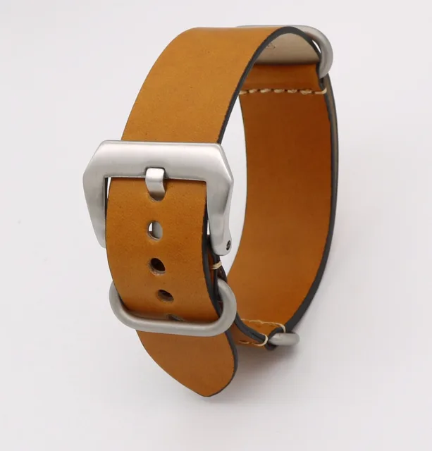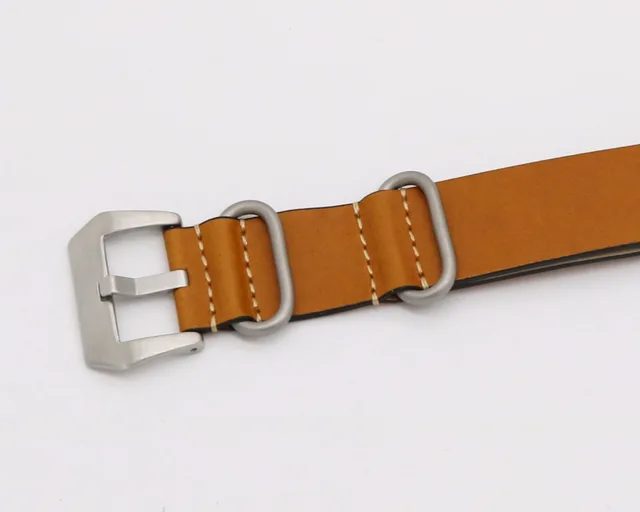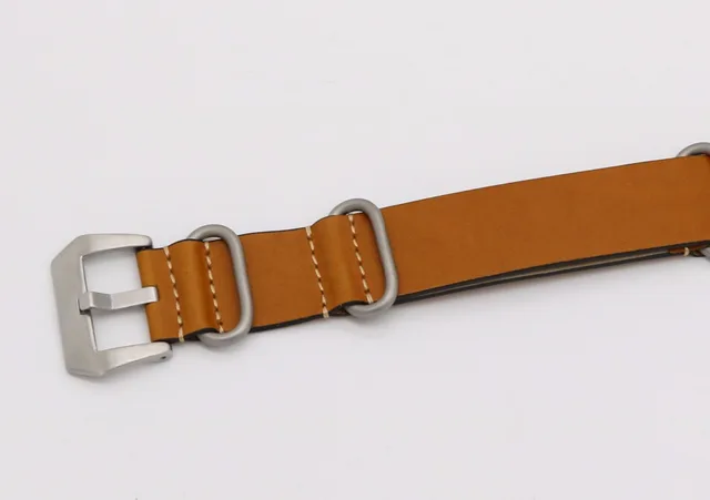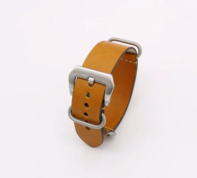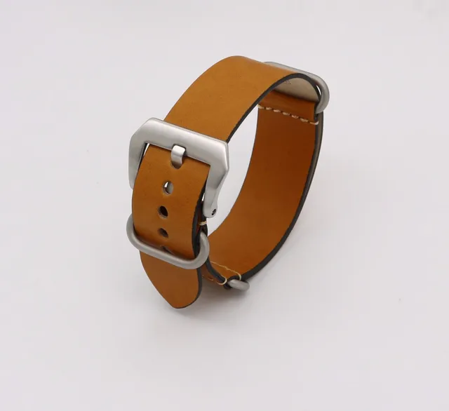 | [해외] 24 미리메터 새로운 남자 레이디 라이트 브라운 카키 빈티지 시계 밴드 스트랩 벨트 진짜 가죽 실버 나사 버클 고급 나토 Zulu 링 |