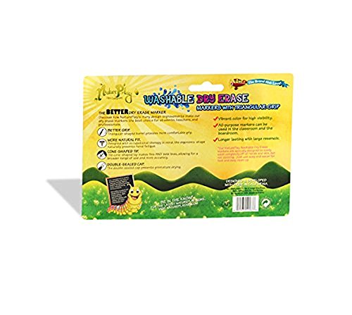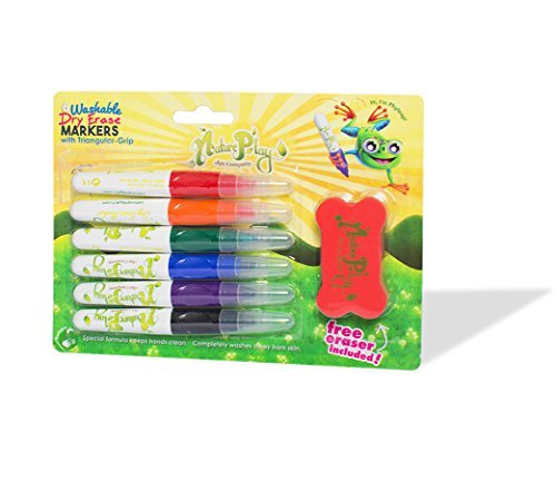 PRODUCT SPECIFICATIONS: Package contains (1) NaturePlay Triangular Natural Grip Dry Erase Markers Set. Package of six comes with a special ergonomic eraser. Washable. Odorless. Non-Toxic. Chiseled Tip. Double Seal Cap.