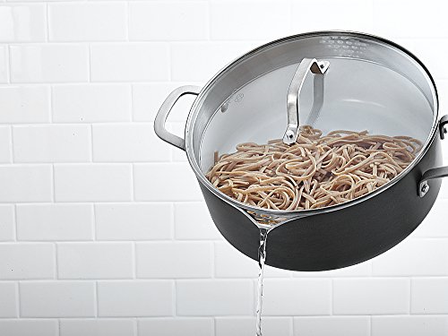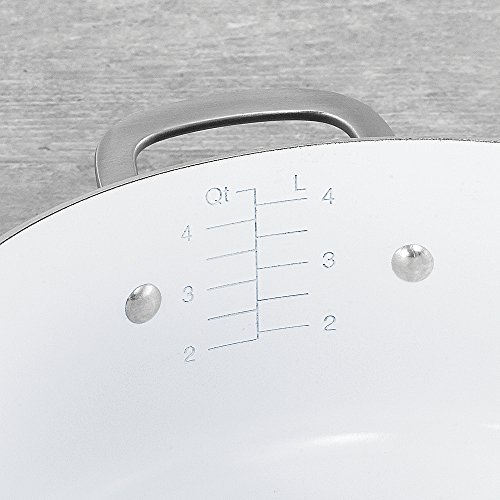 -. Feature : PFOA-free ceramic nonstick cooking surface for easy food release and quick cleanup / Convenient measuring marks, pour spouts & straining lid / Durable for easy, everyday cooking / Hard-anodized aluminum construction / Cast stainless steel loop handles