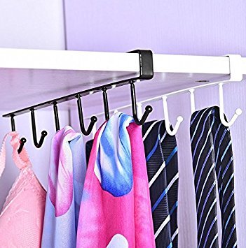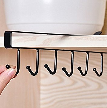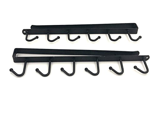 2Pcs Multi-function Nail Free Under-the-closet Single Row Cup Coffee Mug Hooks Clapboard Interlayer Storage Rack Shelf Chest Tie Scarf Hanger Rack (Black)