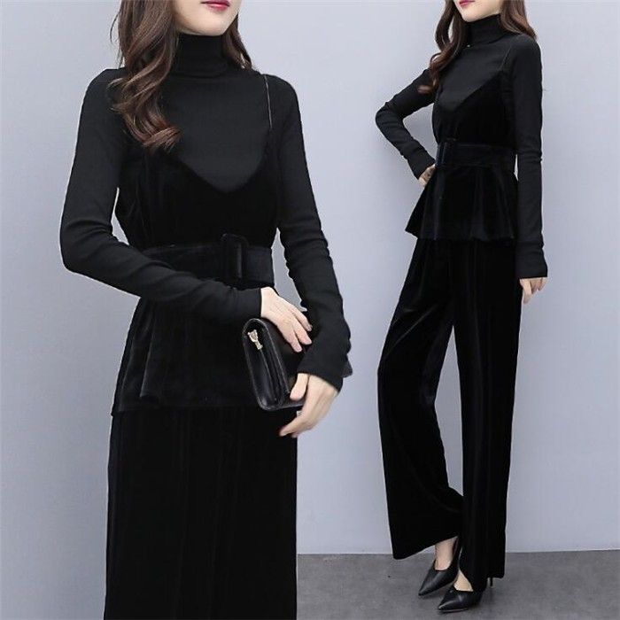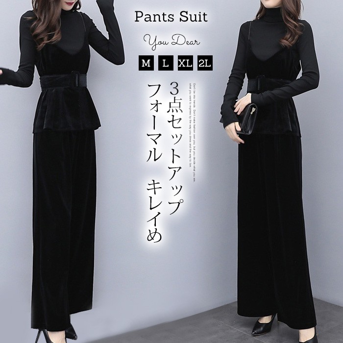 【キーワード検索】:セットアップ 3点セット レディース ワイドパンツ フォーマル パーティードレス パンツドレス ベロア ガウチョパンツ 上下セット 無地 ニット セーター ハイネック 長袖 ベロアキャミソール オシャレ 秋 冬 大きいサイズ 秋物 セレモニースーツ ビジネス カジュアル 通勤 オフィス OL【使用シーン等】:結婚式 パーティー 結婚パーティー 二次会 披露宴 お呼ばれ 普段使い 通学 通勤 OL ビジネス 入園式 入学式 ママ 卒園式 お食事会 成人式 卒業式 謝恩会 同窓会 演奏会 発表会 女子会 参観日 七五三 お宮参り 20代 30代 40代 50代 60代★素材:ボリエステル★カラー:黒 ★サイズ(CM):M:バスト81-98 肩幅36 袖丈64 トップス丈56-61 ウエスト70 パンツ丈101L:バスト82-101 肩幅37 袖丈65 トップス丈57-62 ウエスト74 パンツ丈102XL:バスト83-104 肩幅38 袖丈66 トップス丈58-63 ウエスト78 パンツ丈1032XL:バスト84-107 肩幅39 袖丈67 トップス丈59-64 ウエスト82 パンツ丈104
