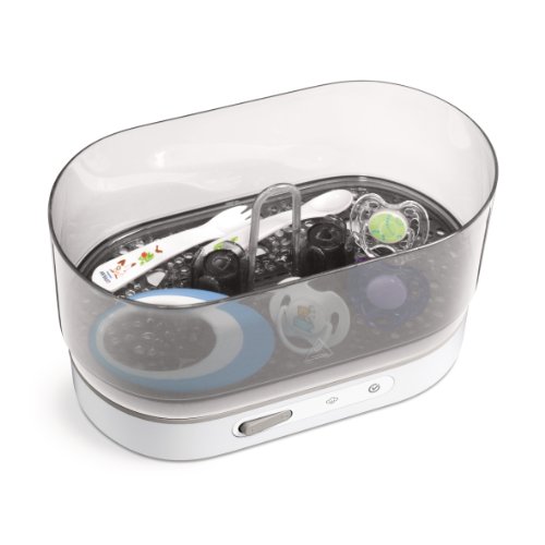 Feature : Kills 99.9% of harmful germs and bacteria without using chemicals / Sterilizes in just 6 minutes with automatic shut off for speed and safety / Keeps contents sterile for up to 24 hours if the lid is unopened / 4-in-1 adjustable modular design, with an integrated dishwasher basket, allows you to fit a variety of bottles, pumps and accessories / At full capacity, fits up to 6 bottles, suitable for all wide neck and narrow neck bottles