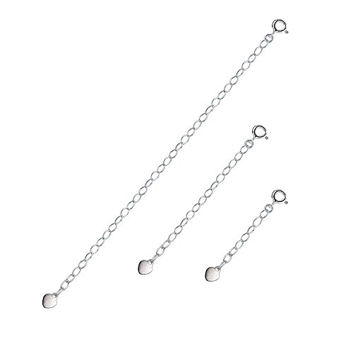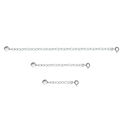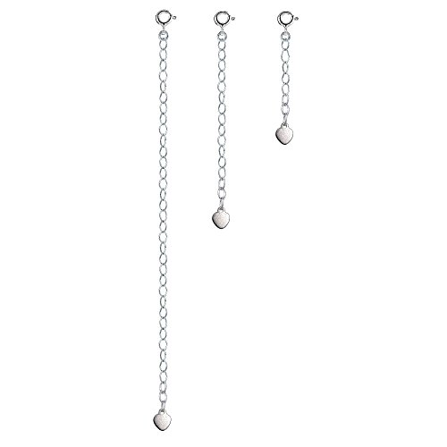 -. Title : Sterling Silver Oval Link Extender Set for Pendants Necklaces w/ Flat Heart, 3 Sizes