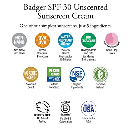 Badger SPF 30 Unscented Sunscreen Cream - 2.9 oz Tube.