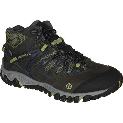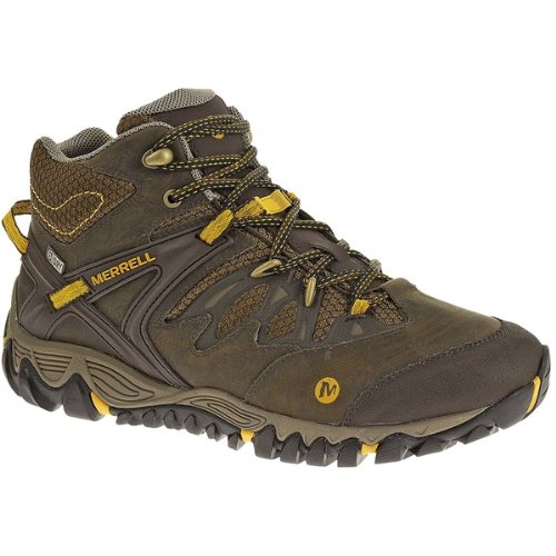 FEATURES of the Merrell Men's AllOut Blaze Mid Waterproof Boot Waterproof oily leather and mesh upper Merrell Stratafuse upper provides a glove-like fit for lightweight durability and natural Movement Molded TPU external heel counter for added stability Dye cut rubber Bellows tongue keeps debris out Breathable mesh lining treated with M Select Fresh odor control Merrell Omni-Fit Lacing system provides a precise, glove-like fit M Select dry seals out water and lets moisture escape so you can stay dry on the Move 6mm Drop / 15mm heel cushion / 9mm forefoot cushion / 20mm stack height Uni-Fly Midsole disperses impact and stabilizes for a solid takeoff Soft E-Foam Midsole, I-Tech harder top sheet 5mm lug depth Vibram outsoleFeature