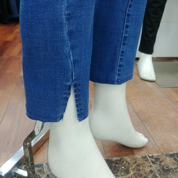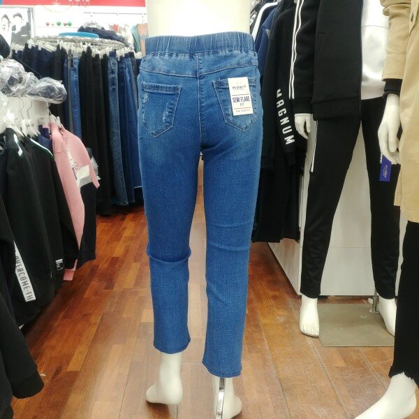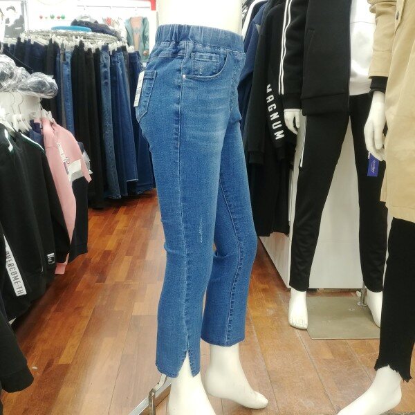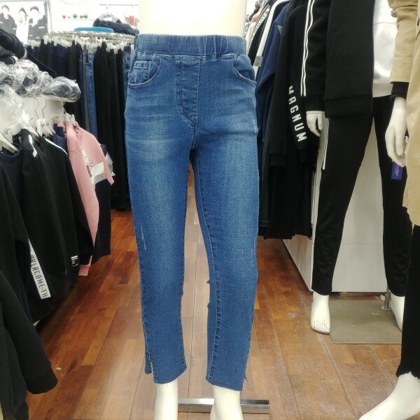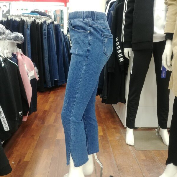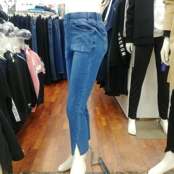 여학생 전용 밴딩 슬림핏 세미 바지입니다.트임 형태도 약간 비껴가는 듯한 느낌으로 포인트를 주었습니다.매력적인 디자인 입니다.