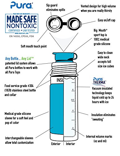 Includes leak-proof Big mouth sport top and bright-colored sleeve crafted of medical grade silicone; top not for hot beverages