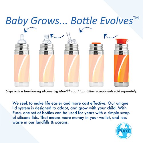 Pura 9 OZ / 260 ML Stainless Steel Insulated Kids Sport Bottle with Silicone Sport Flip Cap & Sleeve, Orange (Plastic Free, Nontoxic Certified, BPA Free)